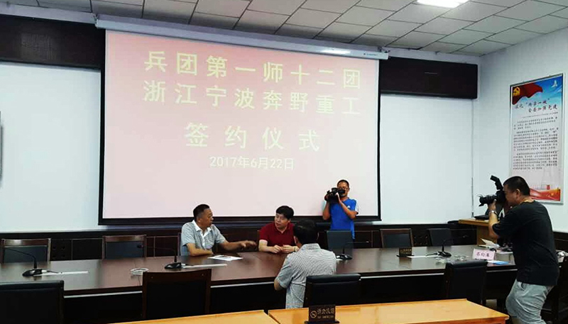 6月22日,寧波奔野重工董事長王興洪等公司領導在新疆出席兵團一師十二團項目合作簽約儀式。