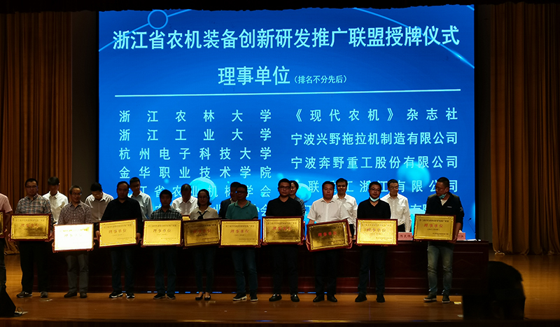 10月11日,在浙江省農(nóng)業(yè)科學(xué)院隆重召開了浙江省農(nóng)機(jī)裝備創(chuàng)新研發(fā)推廣聯(lián)盟第一次全體成員大會(huì)暨授牌儀式。浙江省農(nóng)業(yè)農(nóng)村廳、浙江省經(jīng)濟(jì)與信息化廳、浙江省科技技術(shù)廳、浙江省財(cái)政廳、浙江省農(nóng)業(yè)科學(xué)院、浙江大學(xué)、浙江理工大學(xué)、浙江農(nóng)林大學(xué)、浙江工業(yè)大學(xué)、杭州電子科技大學(xué)、浙江省農(nóng)業(yè)機(jī)械研究院、浙江省農(nóng)業(yè)機(jī)械工業(yè)行業(yè)協(xié)會(huì)、浙江省農(nóng)業(yè)機(jī)械學(xué)會(huì)、《現(xiàn)代農(nóng)機(jī)》雜志社及浙江省農(nóng)機(jī)企業(yè)代表參加了當(dāng)天的會(huì)議。寧波奔野重工股份有限公司受邀參加,并作為理事單位在會(huì)上參加了授牌儀式。
