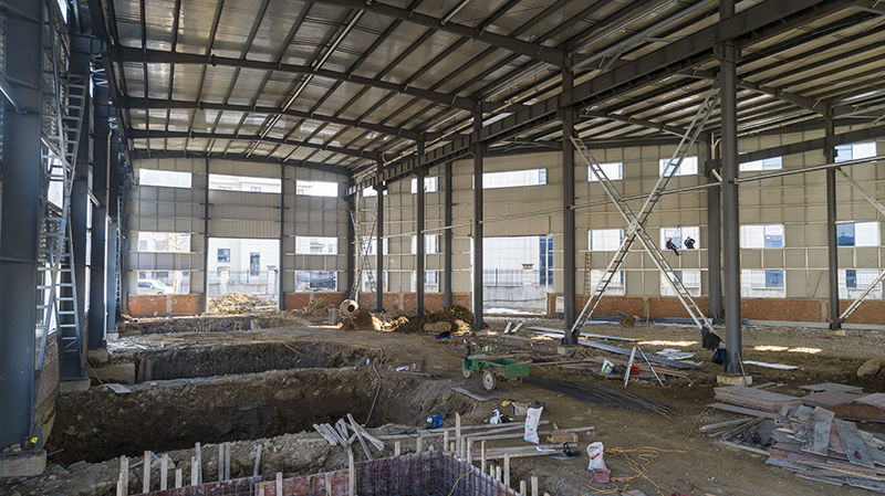進(jìn)度最快的要數(shù)4號(hào)車間。它已經(jīng)完全按照規(guī)劃設(shè)計(jì)圖的樣子拔地而起,立體地展現(xiàn)在我們眼前。車間內(nèi)部,已經(jīng)按照設(shè)備圖紙要求挖出一個(gè)個(gè)設(shè)備承臺(tái)的位置,為將來安裝設(shè)備做好基礎(chǔ)。