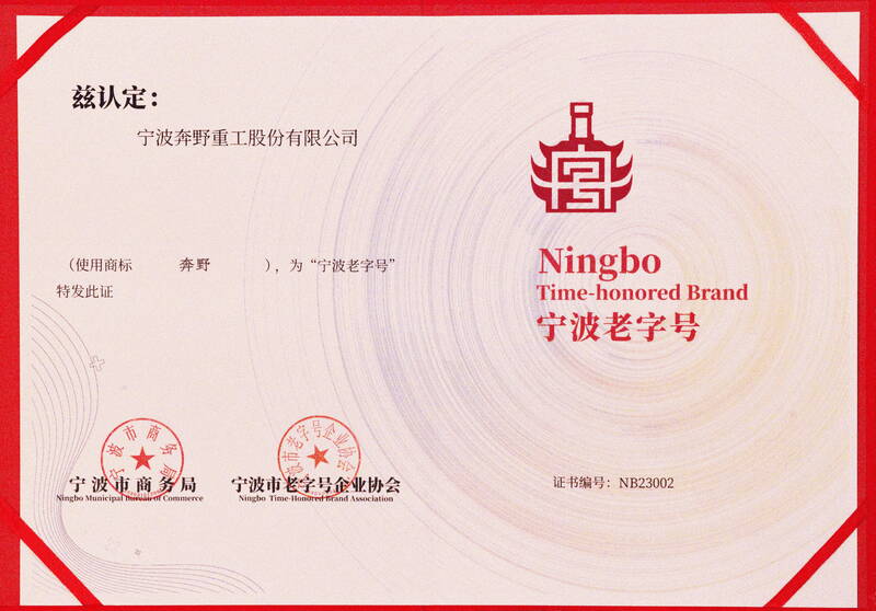 2023年11月12日,第三批“寧波老字號(hào)”授牌儀式在寧波國(guó)際會(huì)展中心2023中國(guó)(寧波)食品博覽會(huì)現(xiàn)場(chǎng)隆重舉行。本次活動(dòng)由寧波市老字號(hào)企業(yè)協(xié)會(huì)會(huì)長(zhǎng)張空主持,寧波市商務(wù)局副局長(zhǎng)葉文濤等領(lǐng)導(dǎo)出席并講話(huà)。寧波市商務(wù)局消費(fèi)促進(jìn)處處長(zhǎng)尹秋平為寧波奔野重工股份有限公司授牌,“奔野”品牌榮獲寧波老字號(hào)稱(chēng)號(hào)。