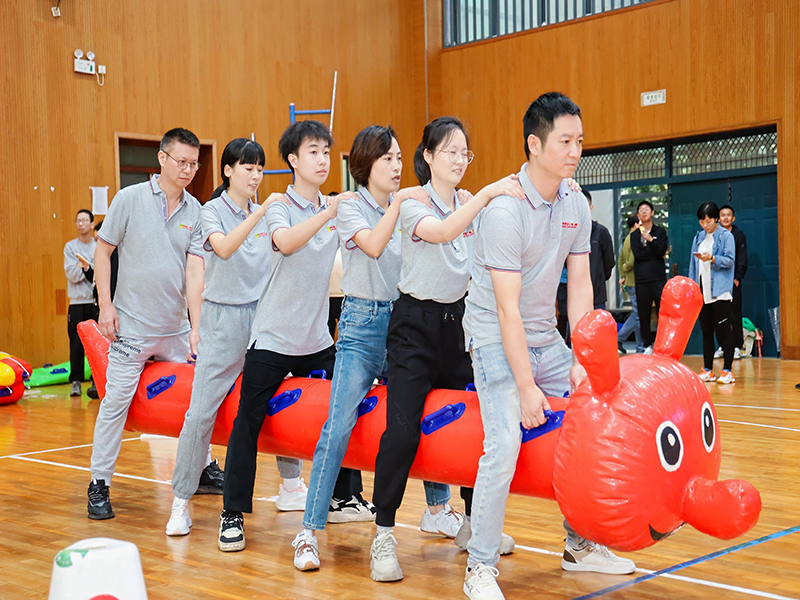 “毛毛蟲(chóng)競(jìng)速”更是趣味十足。一條色彩鮮艷的充氣“毛毛蟲(chóng)”擺在賽道上,隊(duì)員們依次跨坐在上面,雙手緊緊抓住“毛毛蟲(chóng)”的兩側(cè)。只聽(tīng)發(fā)令槍響,各隊(duì)就像一條真正的毛毛蟲(chóng)般開(kāi)始蠕動(dòng)前行。